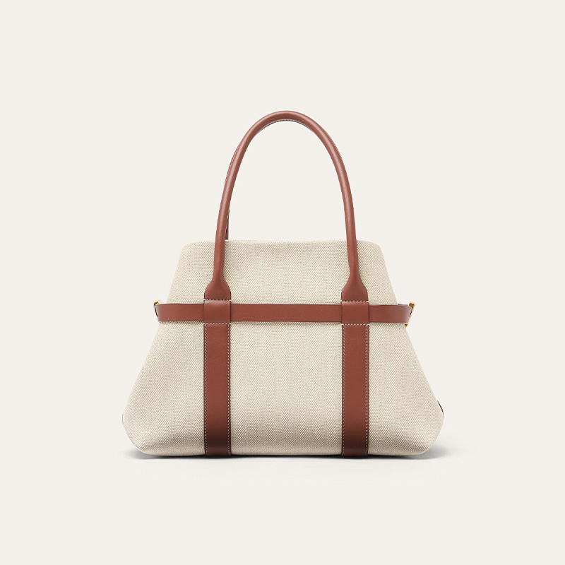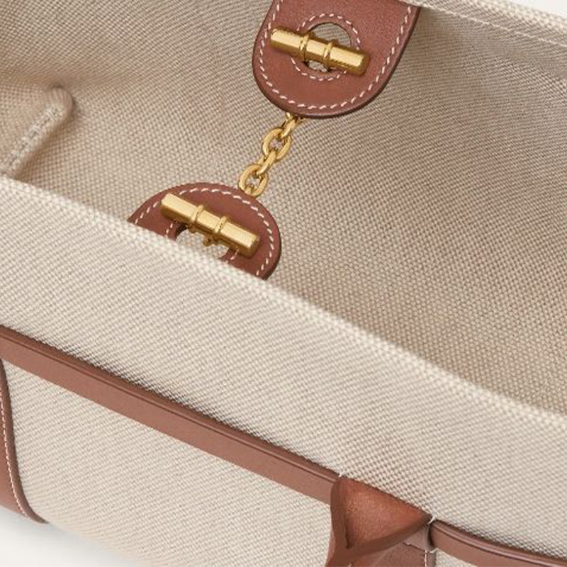 This canvas tote bag cleverly combines classic canvas with high-quality leather, creating a simple yet elegant design. The metal lock closure provides added security and enhances the overall look. The double leather handles make carrying comfortable, combining style and practicality. The durable material ensures long-lasting use, making it an ideal choice for daily commuting or leisure travel.