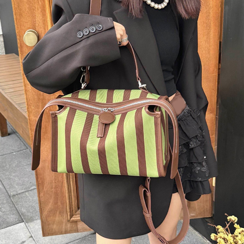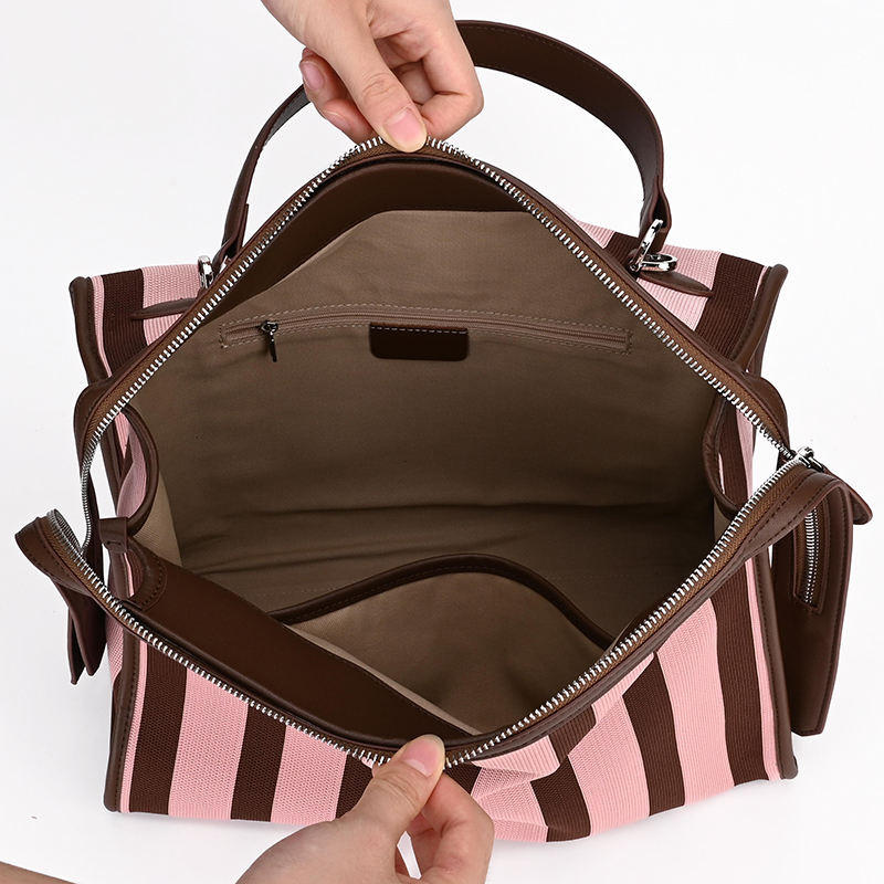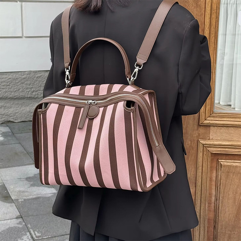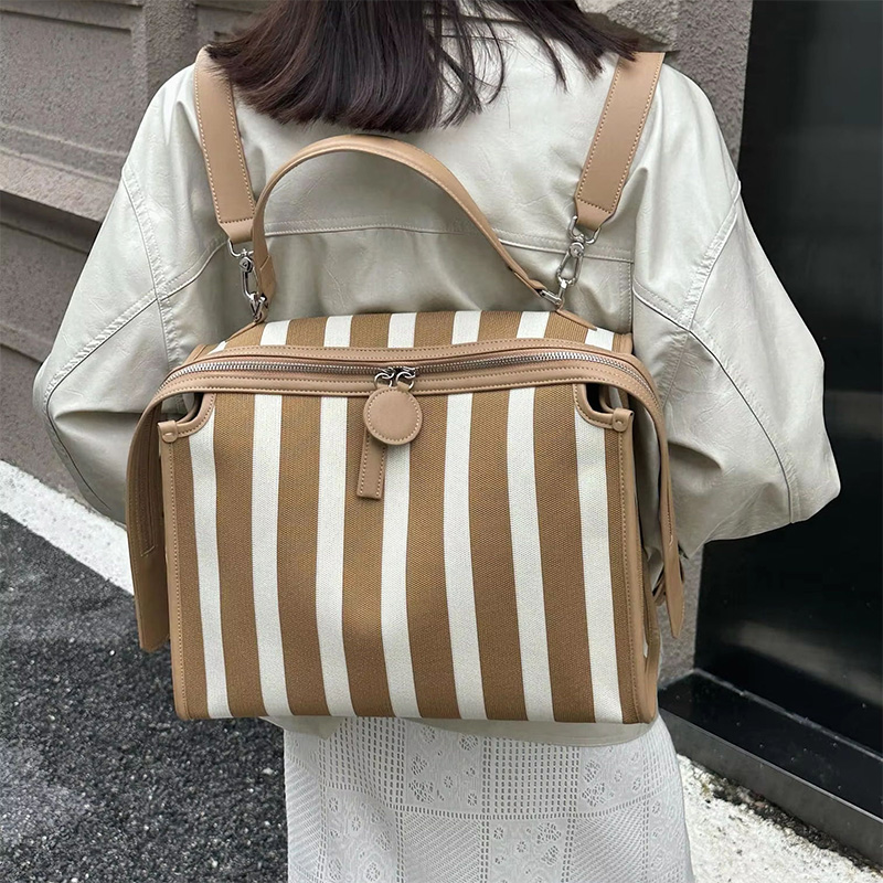 This backpack features a stylish striped design, creating a simple yet stylish look. The double zipper closure provides a secure and easy opening and closing. The interior compartments are strategically divided, making it easy to organize books, documents, or daily essentials. The exterior pockets are convenient for storing small items like phones and keys, keeping them readily accessible. The removable dual shoulder straps allow for flexible carry, whether by hand or over the shoulder, perfectly balancing functionality and style.