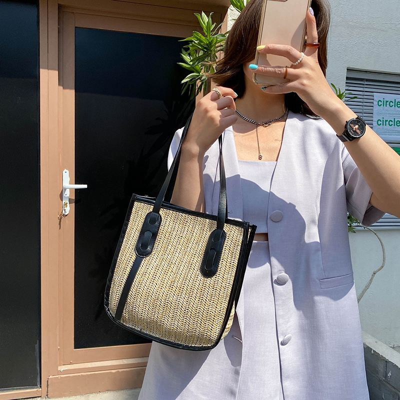 This beautifully hand-woven straw beach bag showcases a natural feel and casual style. The top clasp allows for easy closure and secure storage. The durable and comfortable leather handles are lightweight and portable, making it perfect for the beach, vacation, or everyday casual travel. The natural color and minimalist design complement any summer outfit, allowing you to effortlessly style yourself in the sun.