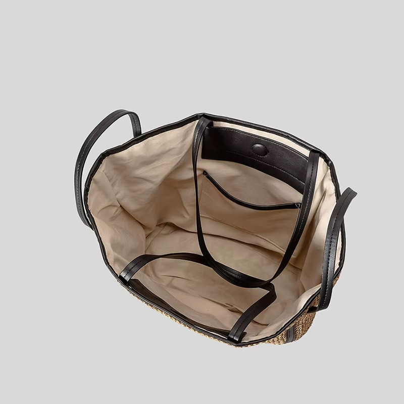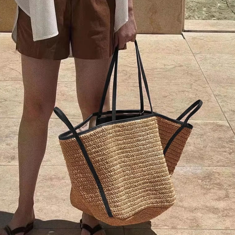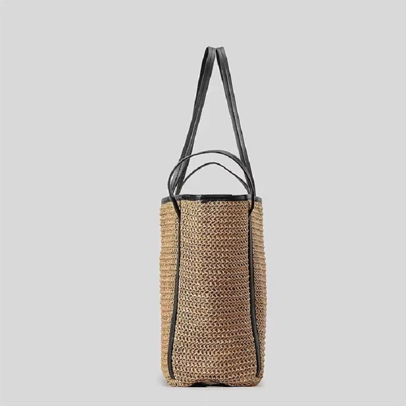 Crafted from natural woven straw, this beach bag is lightweight and breathable, brimming with natural charm. Its simple yet stylish design makes it an ideal choice for summer outings, beach vacations, or everyday leisure. Its spacious design easily accommodates essentials while maintaining a lightweight feel. The top magnetic closure provides easy and secure access. The refined leather handles are comfortable and add a touch of quality.
